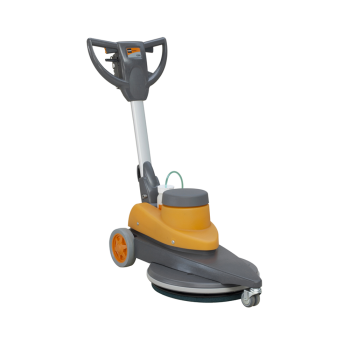Taski swingo 350 B/E Исклучително компактна машина за чистење на мали затворени простории со работна ширина од 38 cm, големина на резервоарот за чиста вода од 10L и нечиста вода од исто така 10L. Автономијата на батерискиот модел е 45 минути, додека должината на кабелот кај моделот напојуван со електричен кабел е 25 метри.